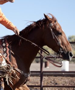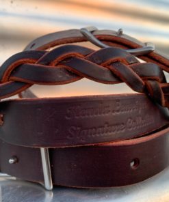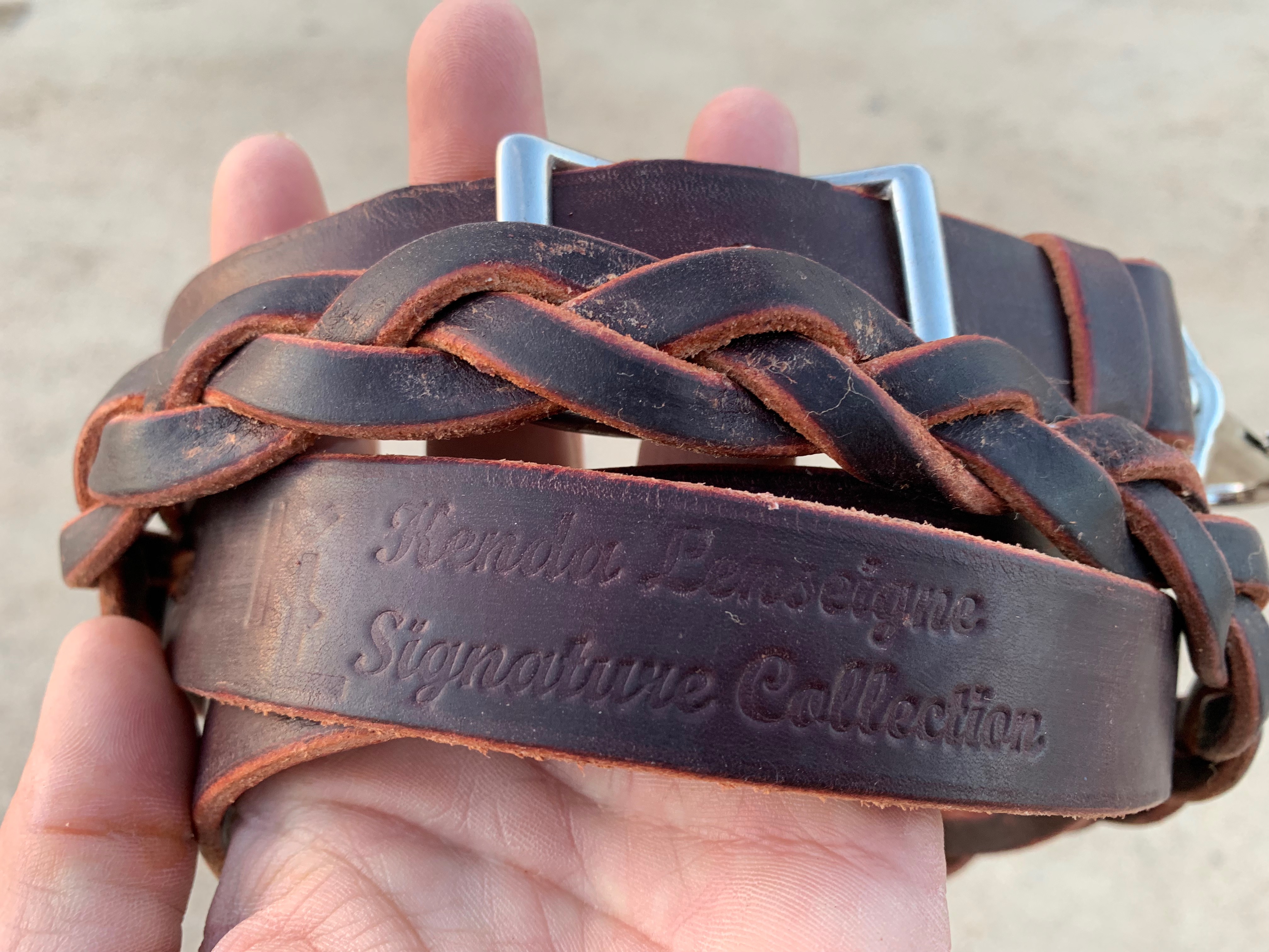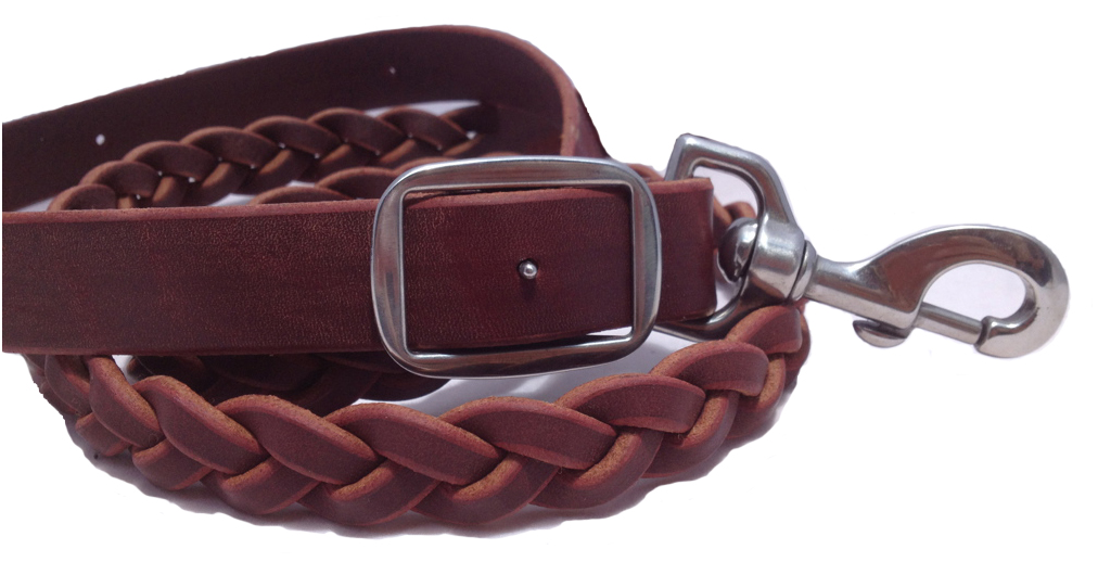 This 1” wide, 7’ long custom heavyweight rein is hand made with a tightly woven braid that provides an assured grip in the rider’s hand. Made from high quality, full grain cowhide leather with heavy chrome snaps, this rein is my favorite in the collection. The large ez-glide Conway buckles allow for quick and effortless length adjustment, making it a cinch to adjust before and after your run. Color: Latigo
