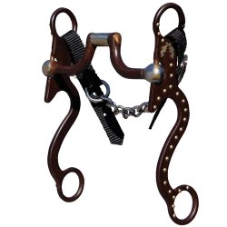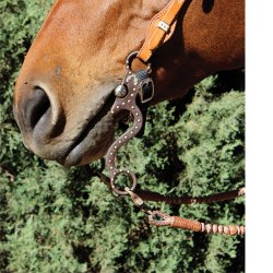 “This bit is my number one go-to during the high pressure of competition and is only used when I compete. Using a mild work bit for everyday use and switching to one only used for competition helps keeps the pressure points in the mouth responsive when adrenaline is high, and keeps my horse listening to me from the start to the finish line. It has a considerable amount of rate and stop influence on the horse because of the squared port and shank length. The port offers tongue relief and poll collection but enables me to lift a shoulder and engage the hip because the hinged three-part mouthpiece allows for independent rein action.” Port: 1 ½” Mouth: 5 ¼”, Cheek: 7”