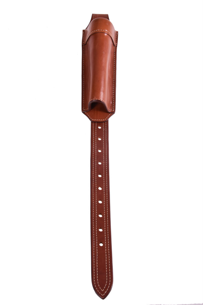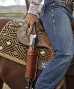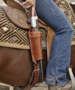 Designed to fit both a lever action rifle, carbine or shotgun, this Long Gun Scabbard mounts directly to the rear rigging dee of a western saddle, and is all one piece for easy installation or removal. Chestnut Tan finish.