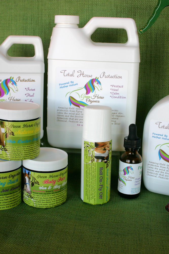 If only the Best will do for you and your equine partners, then you have finally found the fly spray of your dreams. Green horse is safe natural and extremely effective in the battle against horse pests. This hard working multi-tasker provides four ways to bring your horse Equine bliss. Protection from All types of Flies, mosquitoes, gnats, bees, fleas, lice and ticks. My custom blend of 9 essential oils creates a barrier, making your horse invisible to these insects, including Mother Natures heavy hitters; Peppermint, Lemon grass, Lemon Eucalyptus, Palmarosa, Neem, Cedarwood, clove bud, Rosemary more. Healing from previous bites, stings and skin abrasions with a large dose of Neem,Tea Tree oil, witch hazel and organic Aloe Vera Juice. Calm the sensitive and nervous horse with potent Organic lavender and peppermint essential oils. Helps reduce stress for hauling, training, vet, farrier and shows. Condition the coat with superior oils of Avocado, Rice Bran, Grapeseed, (Sunflower and Coconut oil )-(Also provides natural UV Protection to prevent bleached hair coats). All contain skin nurturing properties without being greasy plus this helps adhere the fly fighting ingredients to the hair shaft for long lasting effectiveness and gorgeous shiny coat. Every single ingredient was carefully chosen by me to provide a natural benefit for you and your horse. Premium cosmetic grade ingredients that are sourced from fair trade, wild crafted, Organic and natural suppliers. Never ever any pesticides, toxins, alcohol, cheap filler ingredients like mineral oil, parabens, phalates,petro-chemicals,harsh preservatives or other bad stuff. You will love the powerful Industrial strength trigger sprayer that lets you apply a fine mist or stream and does not leak. It does not cause hand fatigue and hold up to lots and lots of use. My pet peeve in horse products is a cheap, hard to spray bottle that does not even last through the year! So you can bet this one is made for horse people! Several sizes available.